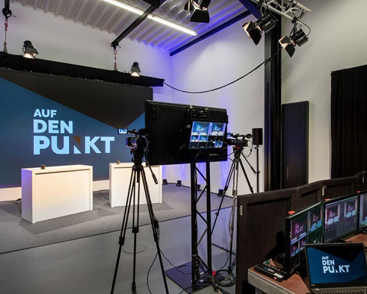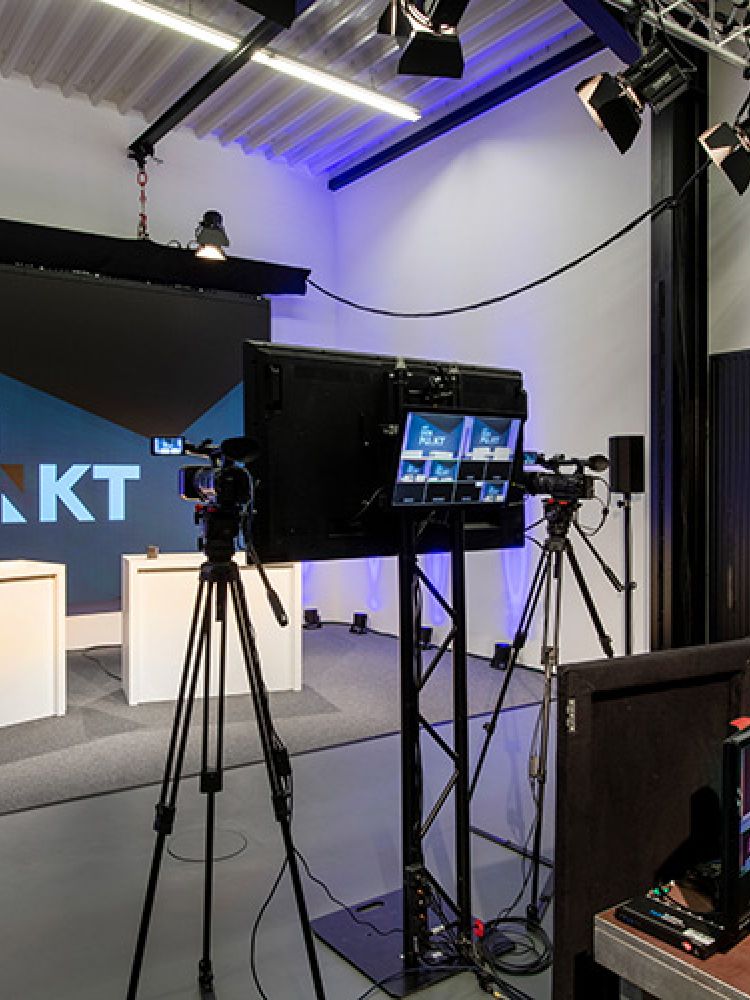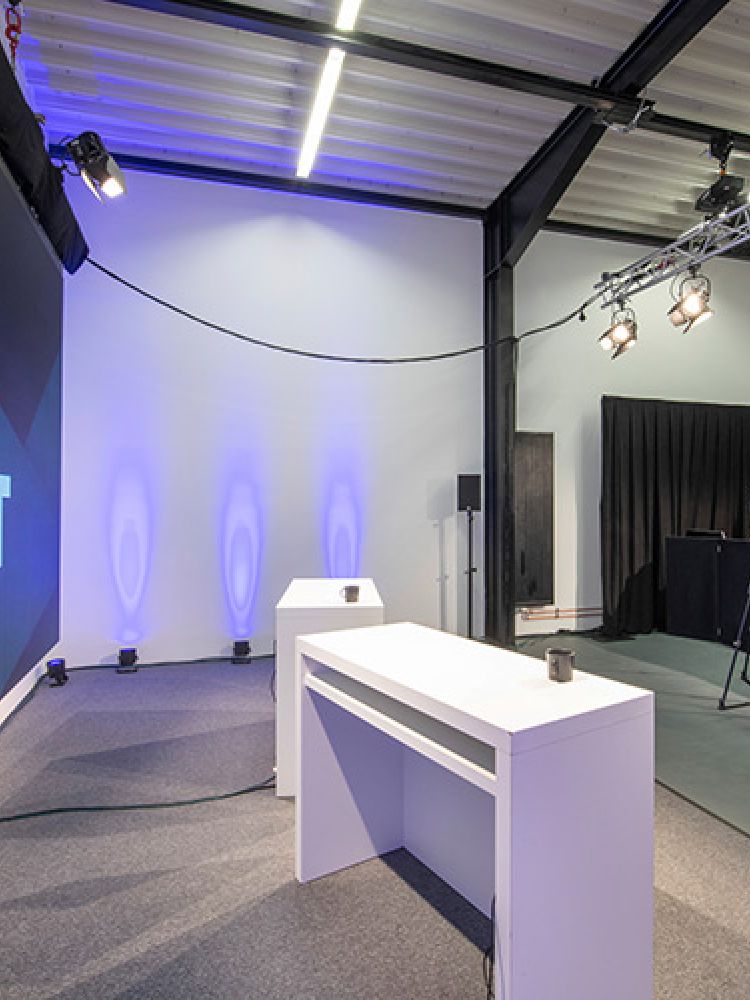 Wir haben unser firmeneigenes 70 qm großes Studio! „Hmm“ werden Sie sagen, in Weiß – na toll und jetzt? Überraschung! Dieses Studio kann man so vielseitig nutzen wie einen Besen (zum Fegen, Fliegen, Werfen, alles denkbar). Ein Ort für große Ideen! Um es etwas klarer auszudrücken: Produktvorführung, Pressekonferenz, Präsentation oder Talkrunde, unser Studio ist vielfältig nutz- und individuell an Ihre Bedürfnisse anpassbar.